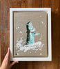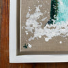 Framed in a gently distressed solid wood float frame, hand-painted white for a clean coastal finish