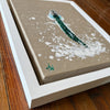 Framed in a gently distressed solid wood float frame, hand-painted white for a clean coastal finish